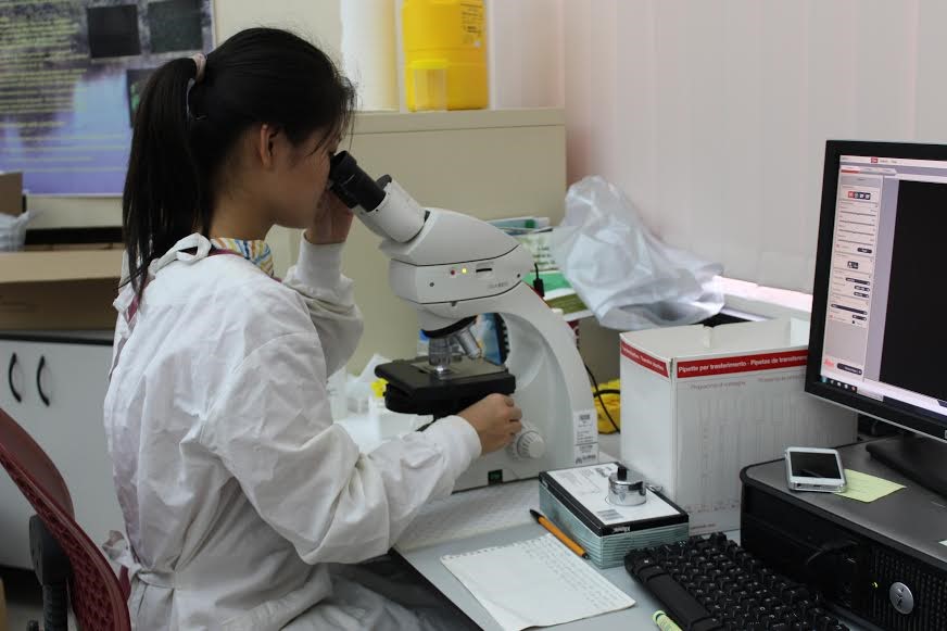 Dr Man Xiao working in the research labs at Griffith University. Photo: Man Xiao